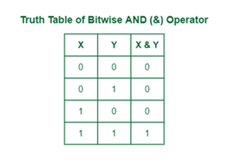 The bitwise AND operator is denoted using a single ampersand symbol, &. The & operator takes two equal-length bit patterns as parameters. The two-bit integers are compared. If the bits in the compared positions of the bit patterns are 1, then the resulting bit is 1. If not, it is 0.